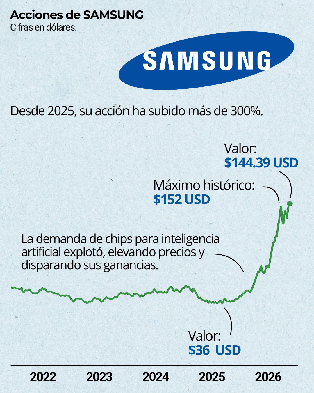 Samsung estima que sus utilidades operativas del primer trimestre superarán los $37,800 millones de dólares, impulsadas por el negocio de chips y en particular por la demanda de memorias de ancho de banda usadas para la inteligencia artificial.