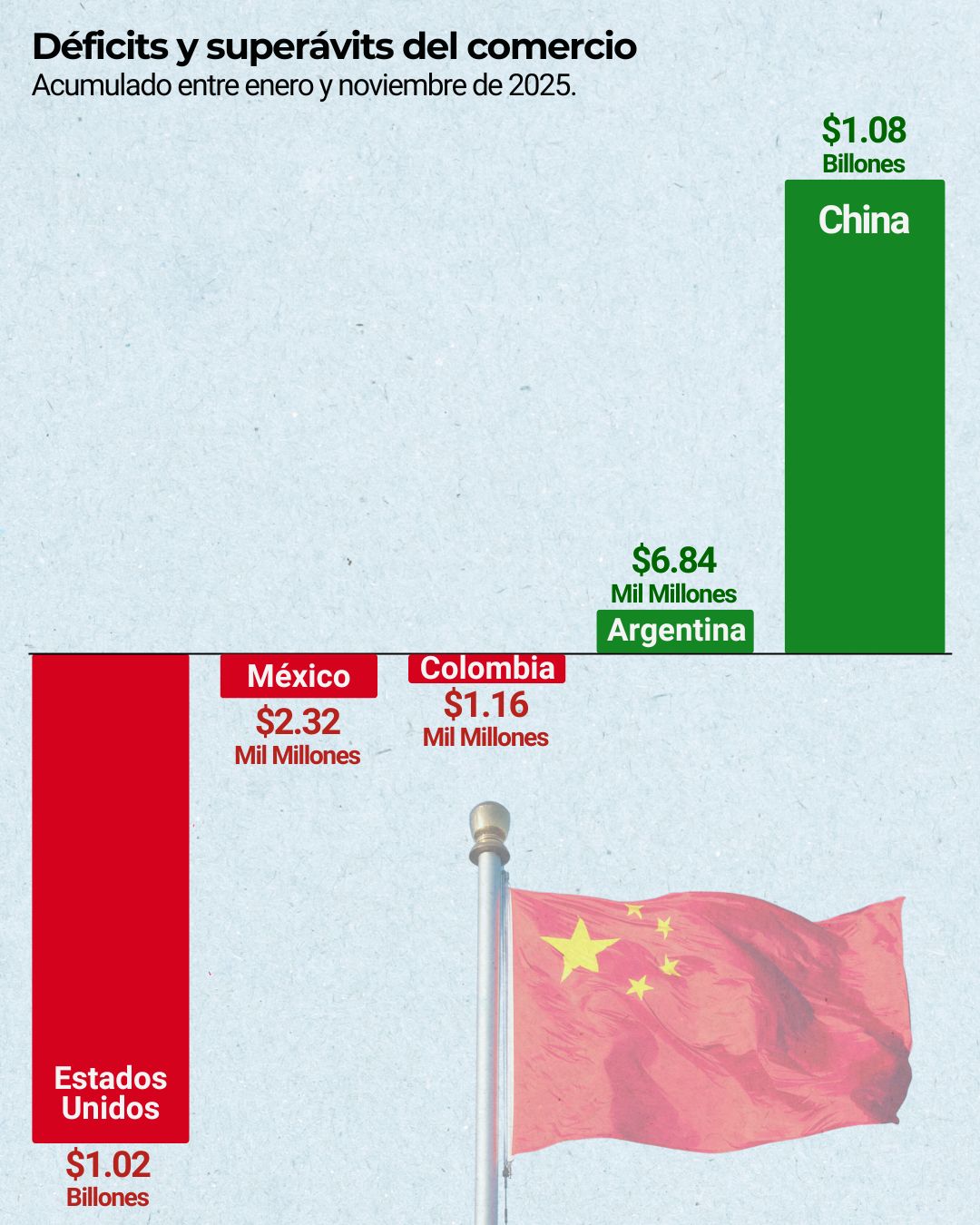 China superó por primera vez el billón de dólares en su superávit comercial anual, alcanzando cerca de $1.08 billones hasta noviembre, una cifra histórica que representa casi 10% más que todo 2024.