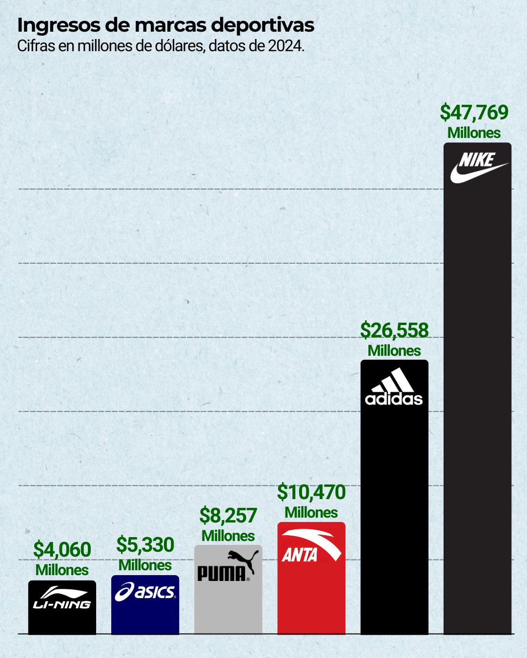 En la última década, Anta registró un CAGR del 19.7%, muy por encima del avance de sus competidores. Durante ese mismo periodo, Nike creció en promedio 4.2% anual y Adidas 3.7%.