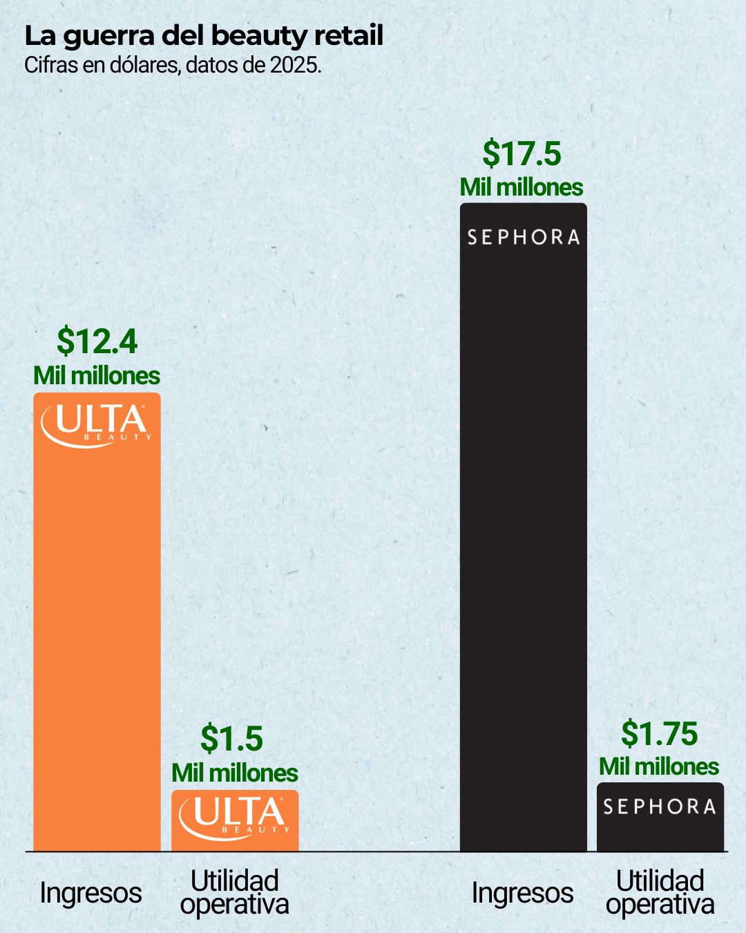 Ulta y Sephora compiten con estrategias muy distintas. Ulta apuesta por la accesibilidad y la variedad. En sus tiendas conviven productos de farmacia y marcas premium, desde maquillaje de $15 hasta herramientas como un secador Dyson de $550, además de servicios de salón. Su programa de recompensas cuenta con casi 46 millones de miembros, el más grande del sector.