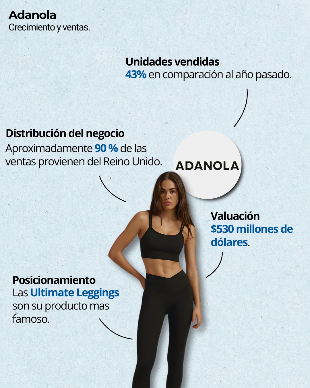 En solo tres años, Adanola, pasó de facturar menos de $10 millones en 2022 a superar los $110 millones en 2025, gracias a sus leggings y tops que equilibran estilo y funcionalidad a precios más accesibles que los de marcas como Lululemon, Alo o Vuori.